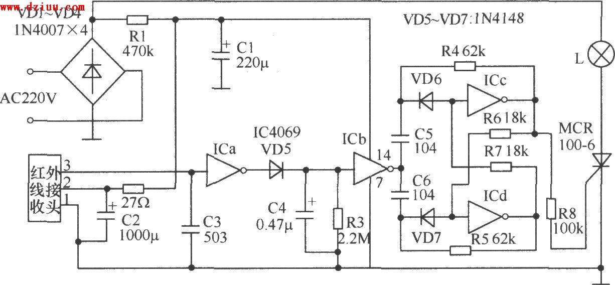 下面為大家提供一款簡易家用電器紅外遙控接收電路,電路簡單實用,本文由www.6600560.cn整理提供,部分內容來源于網絡,如有侵犯到你的權利請與我們聯系更正。