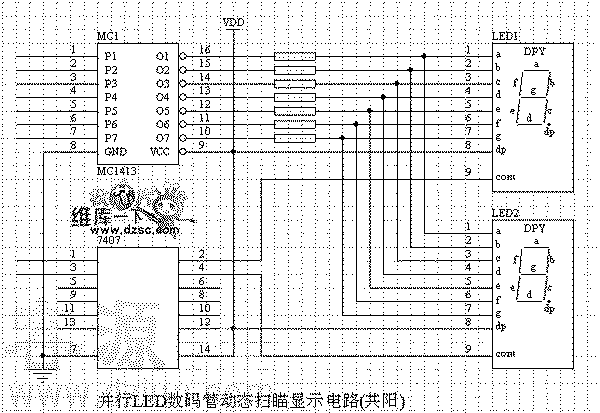 并行LED數(shù)碼管動態(tài)顯示電路圖(共陽)