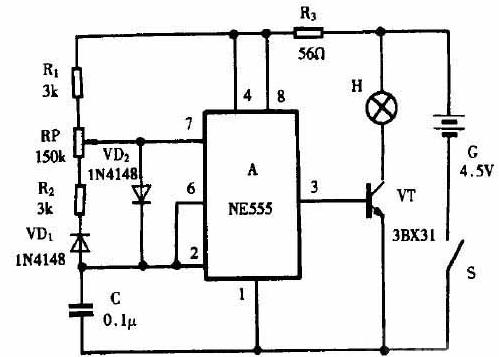 該電路應(yīng)用NE555集成電路組成的調(diào)光電路,元器件少,方便制作,是手電筒調(diào)光IC的首先應(yīng)用電路,4.5V供電,調(diào)光效果好,詳細(xì)元器件參數(shù)及制作請見下圖.
