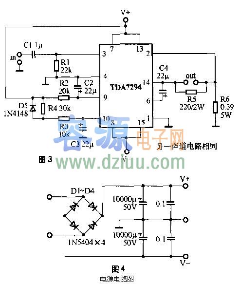 內阻對信號的分流,有利于把輸出信號電流都加在負載上。圖3中,電源電壓選擇為±35V,其放大倍數由揚聲器與R6的比值決定。 <<版權聲明:本文由容源電子網(www_dziuu_com)整理提供,部分內容來源于網絡,如有侵犯到你的權利請與我們聯系更正。》