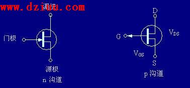 圖1(b)門極的箭頭指向為p指向 n方向,分別表示內向為n溝道JFET,外向為p溝道JFET。 圖1(a)表示n溝道JFET的特性例。以此圖為基礎看看JFET的電氣特性的特點。