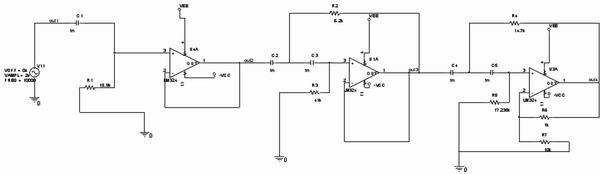 考慮系統對頻率范圍的不平度有較高的要求,采用巴特沃斯濾波器進行設計。帶通由高通和低通級聯實現。