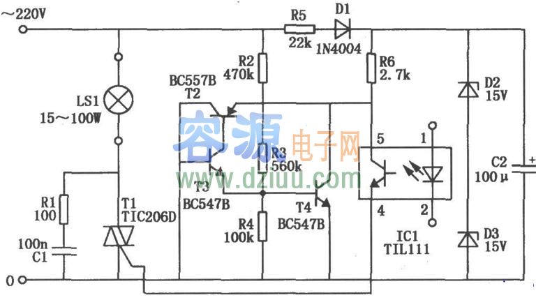 的電路,這里用光電耦合器的LED代替要發(fā)光的LED,去驅(qū)動接有市電的燈泡(例如信號燈)。 <<容源電子網(wǎng)論壇正式上線,為朋友們建立一個友好互動交流平臺,歡迎大家去論壇和朋友們一起分享、學(xué)習(xí)電子技術(shù)。對本文有什么疑問請直接到論壇相應(yīng)欄目發(fā)貼求助。