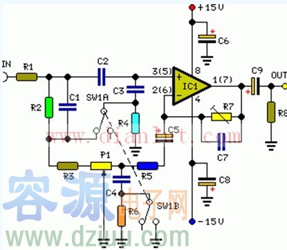 基于LM356的音調開關電路原理圖