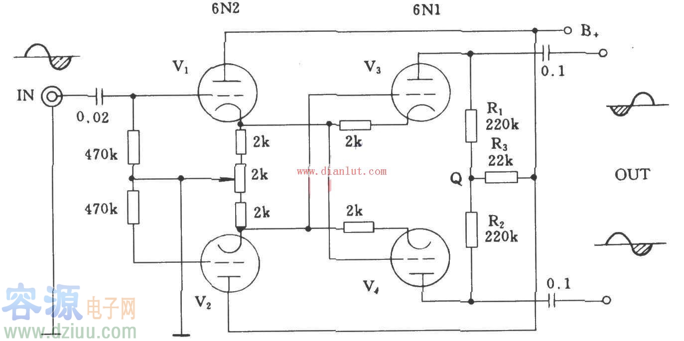 倒相的自動平衡式電子管電路