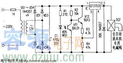 沐浴熱水器自控水龍頭電路如附圖所示,IC QT3353是一種大功率高速開關集成電路,它具有良好的開關特性,其內部設有過壓、過熱等多種保護電路。
