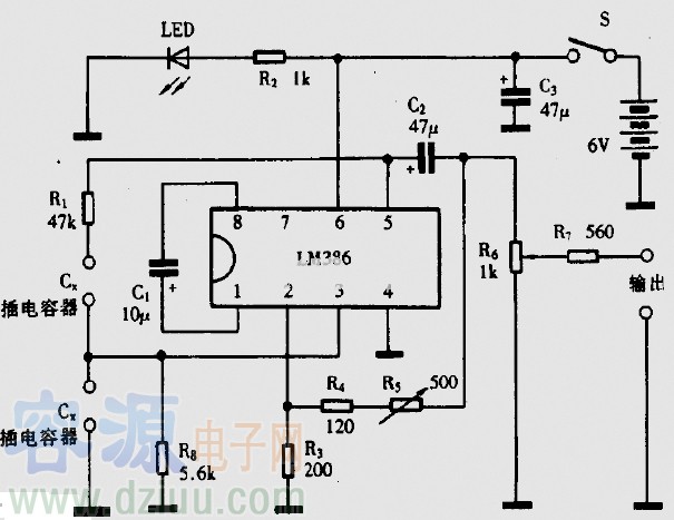 該電路使用了一個很容易獲得的741運算放大器,這個運算放大器是為了大約200的內(nèi)部增益而設(shè)計的。這個運算放大器輸出信號的一部分是被1N4148二極管整流的,然后過濾并反饋到FET輸入分流器電路的門。 :