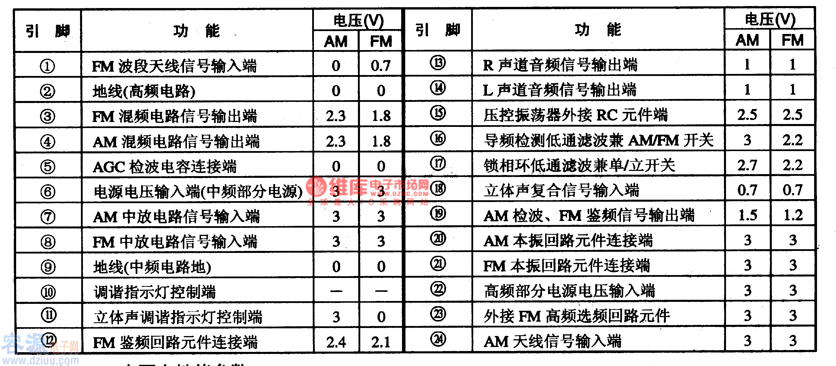 KA2292集成電路的調幅部分包括:高頻放大、本機振蕩、調幅混頻、調幅中放、調幅檢波、AGC粹制、調幅調諧指示及音頻放大等功能電路。