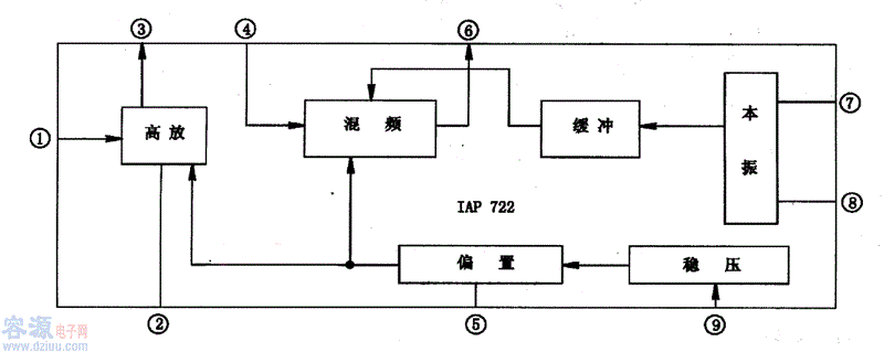 1、lAP722內(nèi)電路方框圖及引腳功能