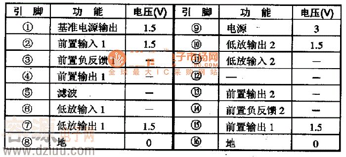 表 2 LA4520單片放音機集成電路的引腳功能及數據