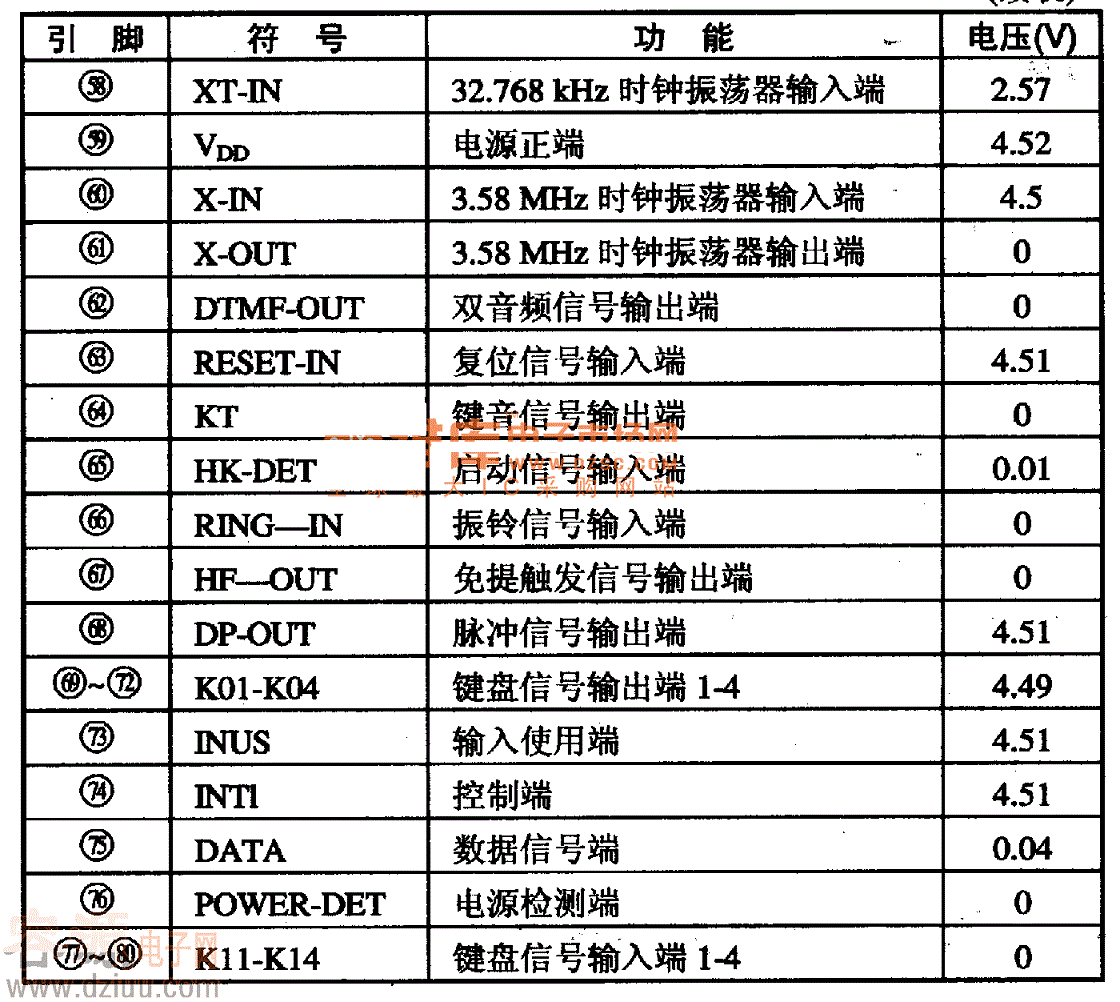 LB10427A集成電路采用80腳軟封裝,其集成電路的引腳功能及數據見表1所列。