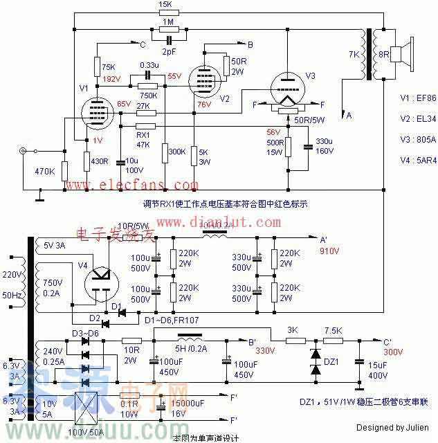 805單端膽機(jī)電路原理圖