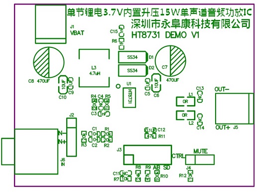 HT8513 單節鋰電供電內置動態同步升壓5W單聲道音頻功放