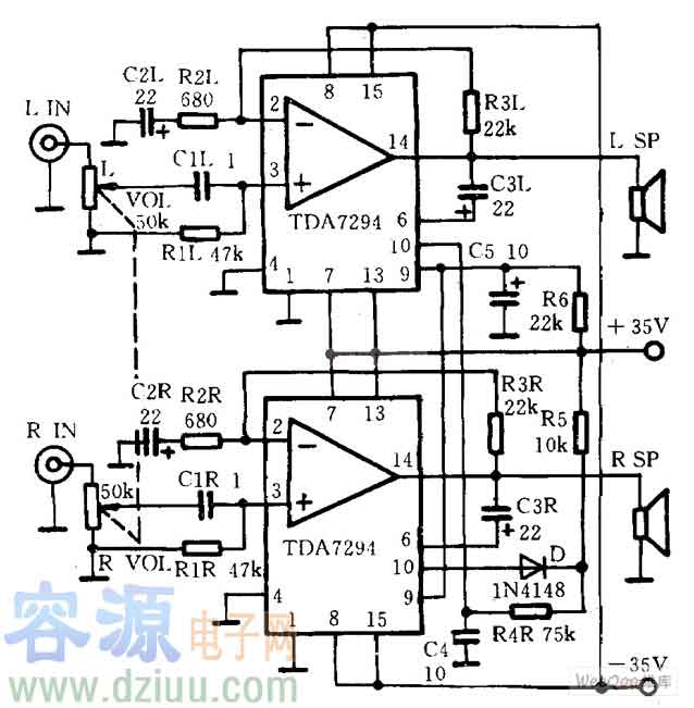TDA2030A的優良性能使得它十幾年來一直得到大家的瘋狂喜愛,很多外表豪華的有源音箱、中檔功放、低音炮也采用了TDA2030。 TDA2030A是單聲道的功率放大集成電路,做立體聲放大器必須使用兩只TDA2030A.TDA2030