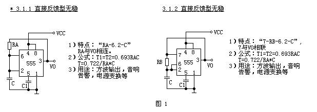 無穩電路的輸入端一般都有兩個振蕩電阻和一個振蕩電容。只有一個振蕩電阻的可以認為是特例。例如:3.1.2單元可以認為是省略RA的結果。有時會遇上7.6.2三端并聯,只有一個電阻RA的無穩電路,這時可把它看成是3.2.1單元電路省掉RB后的變形。