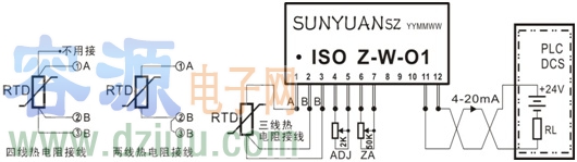 ISO Z-W-O1 采用電磁隔離模式及高效能后級(jí)饋電發(fā)明專利技術(shù),無(wú)需獨(dú)立電源供電即可實(shí)現(xiàn)熱電阻傳感器輸出的溫度信號(hào)到 4-20mA 標(biāo)準(zhǔn)信號(hào)的精準(zhǔn)隔離轉(zhuǎn)換,可以直接同各類常用儀器儀表的模擬量輸入端口(如PLC、DCS系統(tǒng)等)相匹配。IC內(nèi)部包含信號(hào)調(diào)制解調(diào)電路、信號(hào)耦合隔離變換電路、高效能的DC-DC升壓電路、信號(hào)零點(diǎn)、滿度校準(zhǔn)電路和Pt100熱電阻線性化、長(zhǎng)線補(bǔ)償、干擾抑制電路等。輸出回路供電電壓范圍寬(12-36VDC)、轉(zhuǎn)換精度高、線性度好,滿度和零點(diǎn)由用戶通過外接電位器現(xiàn)場(chǎng)調(diào)節(jié)和校準(zhǔn)。