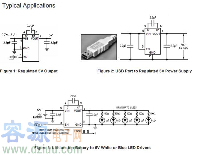 本電路采用新的電荷泵架構,保證零負載情況下工作在恒定的開關頻率,并同時減少輸入和輸出紋波。該電路具有熱保護功能,能承受從VOUT到GND的持續短路。內置的軟啟動電路能防止啟動時產生過大的浪涌電流。較高的開關頻率,可以使用小型的陶瓷電容。低電流待機電流,小于1uA