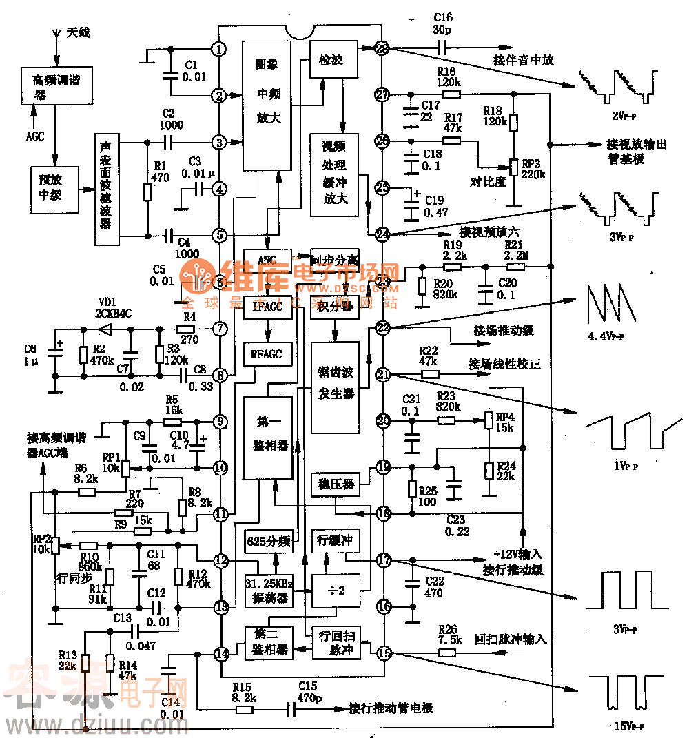 MC13007--單片電視小信號(hào)處理集成電路圖