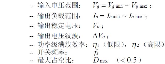 (2):對(duì)稱驅(qū)動(dòng)推挽正激變換器的主要穩(wěn)態(tài)規(guī)格: