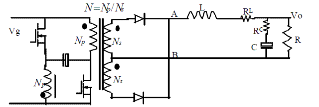 (1):不對(duì)稱驅(qū)動(dòng)半橋變換器的電路圖: