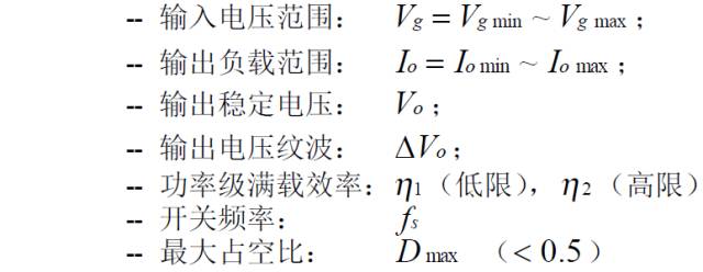 ( 2):對(duì)稱驅(qū)動(dòng)推挽Boost 變換器的主要穩(wěn)態(tài)規(guī)格: