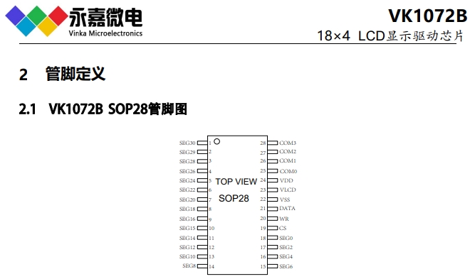 液晶顯示驅動芯片VK1072B/C/D液晶驅動IC原廠/適用醫用