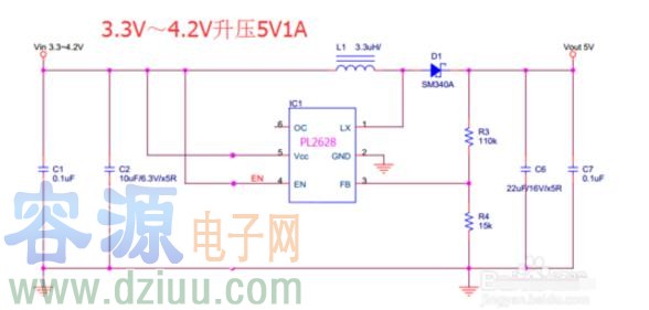 2,異步升壓芯片PL2628,特點:效率普遍80%左右,需要整流肖特基二極管。