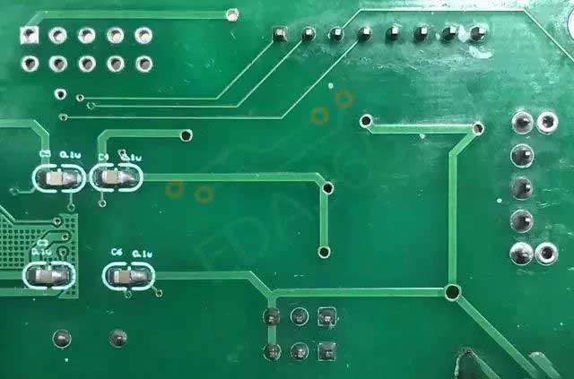 對于電源線、地線等需要通過大電流的PCB線路,需要打很多個過孔。