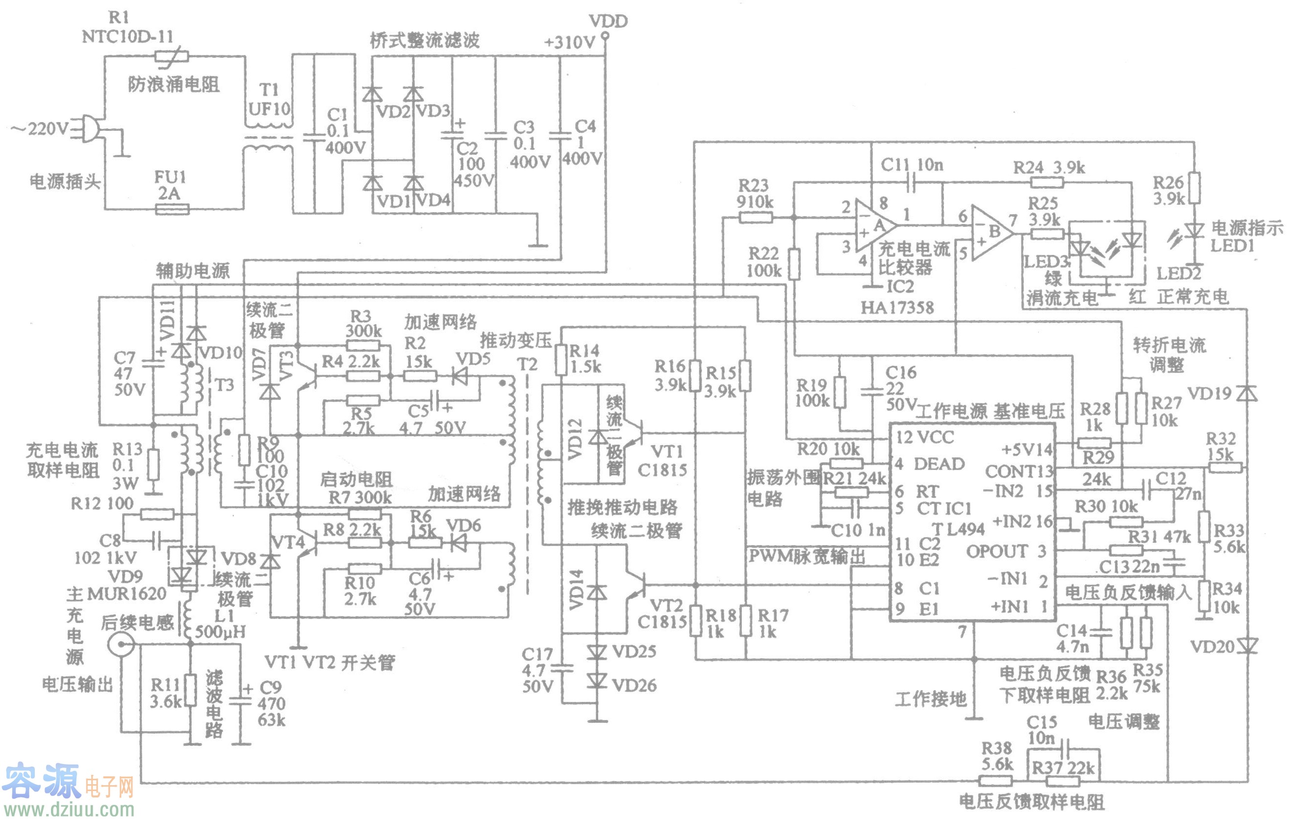 電動自行車達事捷充電器電路圖