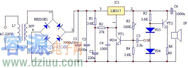 采用三端穩(wěn)壓LM317制作的甲類功放電路