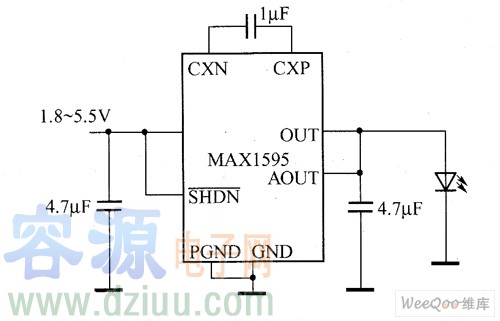 MAX1595電荷泵能夠通過1.8~5.5V的輸入電壓產生3.3V或5V電壓。它的獨特的控制結構允許對輸入電壓進行升壓或降壓轉換,并維持穩定的輸出電壓。由于其lMHz的開關頻率和獨特的控制結構,故可使用1μF的小尺寸陶瓷電