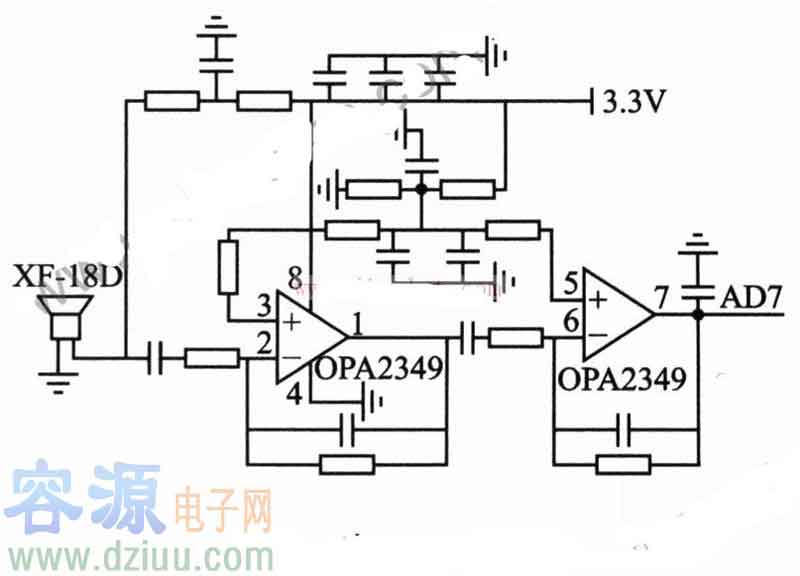 MAX4477構成的聲音采集應用電路圖