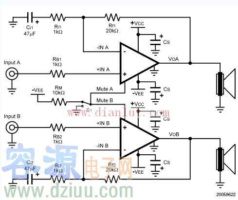 20W+20W立體聲放大器原理圖