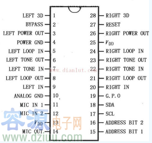 使用在引腳1和5之間的外部串聯RC電路和運放器的并聯內部151K電阻,對揚聲器的低音響應差補償。如果電阻是15K,穩定運行的最低值是10K,就可以得到6分貝的有效低音增強。 :