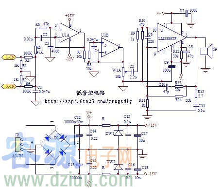 帶通式低音炮電路原理圖