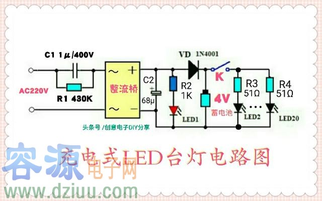 充電式LED臺燈電路的工作原理