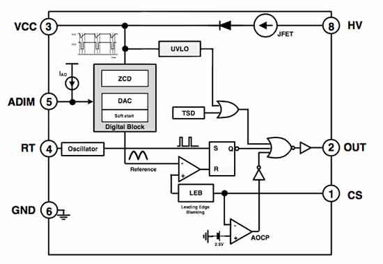 ws3442d7p各引腳功能及應用電路(LED燈電路)