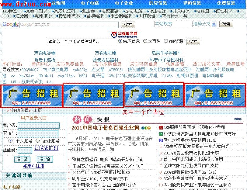 廣告編號:104 名稱:首頁上部 尺寸:197*70 類型:文字/圖片 價格:20元/月/個 詳細介紹: